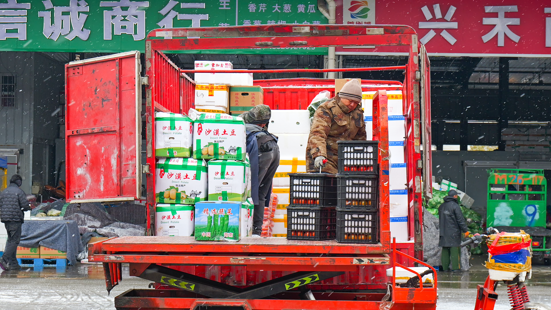 在主營本地生鮮的“聯(lián)康商行”檔口,負(fù)責(zé)人正指揮工人將剛到的蔬菜快速裝車。“市場提前發(fā)了寒潮降雪預(yù)警,我們連夜對接了三汊、臥龍、陡崗的種植基地,還加訂了南方產(chǎn)區(qū)的補貨,供應(yīng)完全跟得上。”